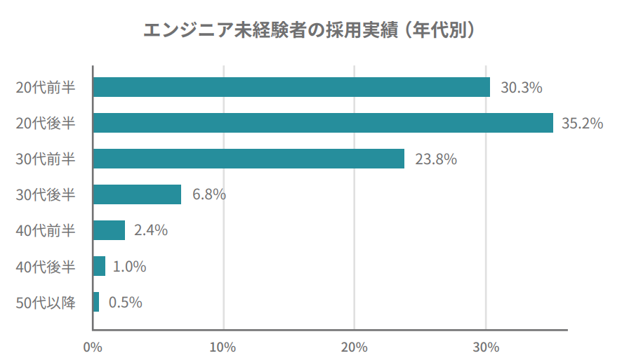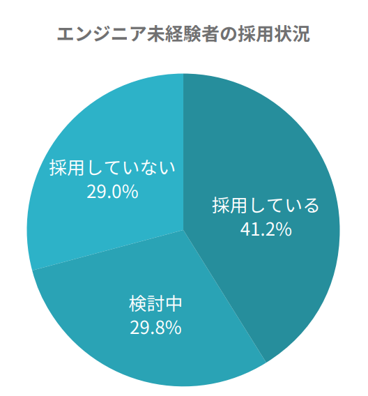 実際、近年のデータでは 未経験エンジニアを採用した企業は41.2% にのぼり、